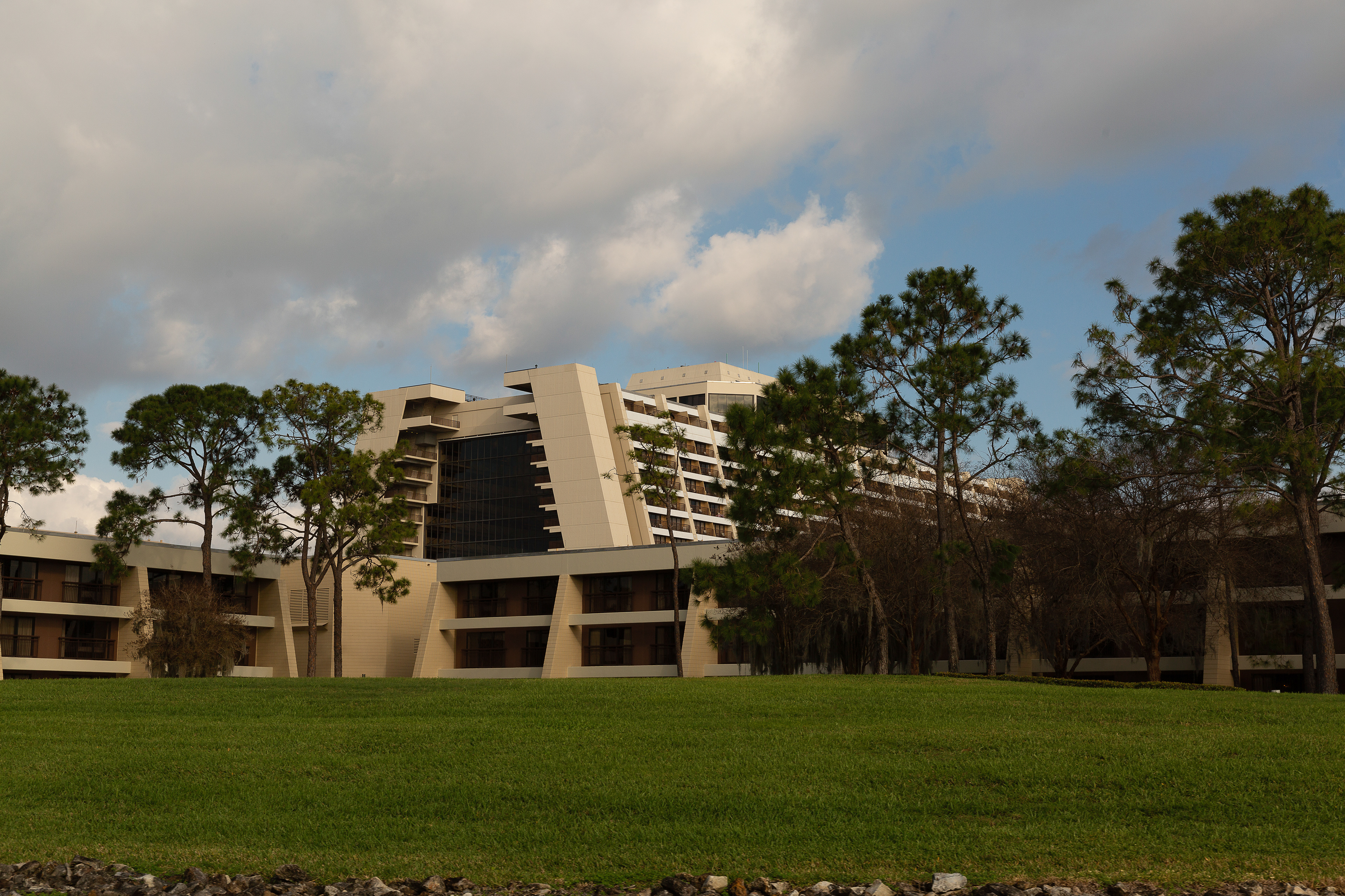 The Walt Disney World and Disney World, is an entertainment complex in Bay Lake and Lake Buena Vista, Florida, in the United States, near the cities of Orlando and Kissimmee. Opened on October 1, 1971, the resort is owned and operated by Disney Parks, Experiences and Products, a division of The Walt Disney Company. It was first operated by Walt Disney World Company. The property covers nearly 25,000 acres (39 sq mi; 101 km2), of which half has been used. The resort comprises four theme parks (consisting of Magic Kingdom, Epcot, Disney's Hollywood Studios, and Disney's Animal Kingdom), two water parks, 27 themed resort hotels, nine non-Disney hotels, several golf courses, a camping resort, and other entertainment venues, including the outdoor shopping center Disney Springs.